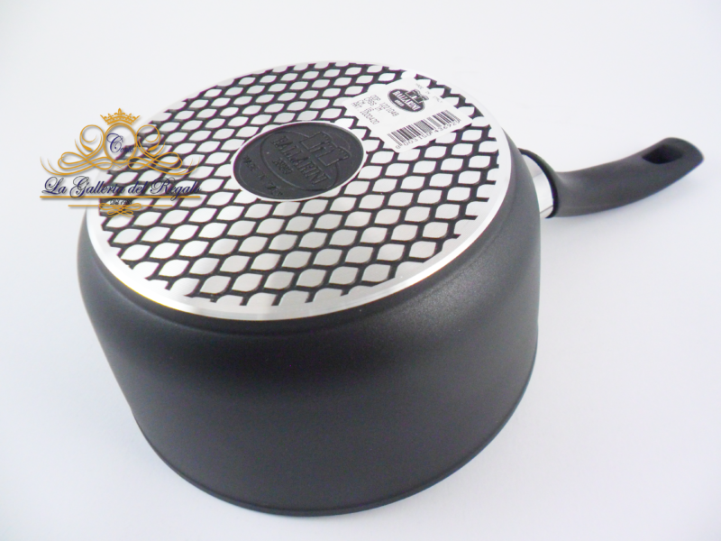 E’ dotata di una immanicatura ergonomica termostabile fino a 160°C che assicura un presa salda e sicura ed è compatibile con la maggior parte delle fonti di calore: fuoco a gas, elettrico, vetroceramica alogeno ed antiaderente.
