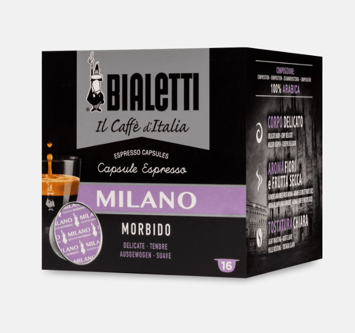 Milano è un caffè espresso leggero e delicato. Grazie alle sue pregiate origini 100% Arabica e alle sue note di fiori e frutta secca regala un gusto morbido e dalla forte intensità aromatica, perfetto per chi beve più caffè al giorno.