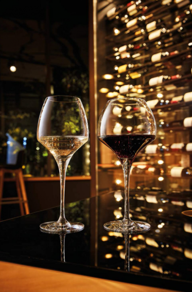 La forma particolare di questo calice accentua particolarmente gli aromi di bacche rosse ed esalta il gusto di vini delicati e raffinati come Pinot Nero e Zinfandel.