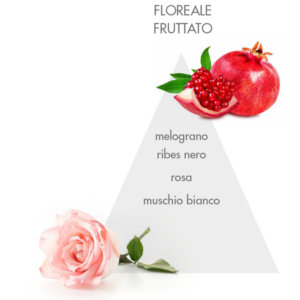 Le note aspre del melograno addolcite da un delicato profumo di rosa rendono l’atmosfera fresca e gioiosa. Una profumazione decisa che anima lo spirito come una brezza leggera di fine estate.