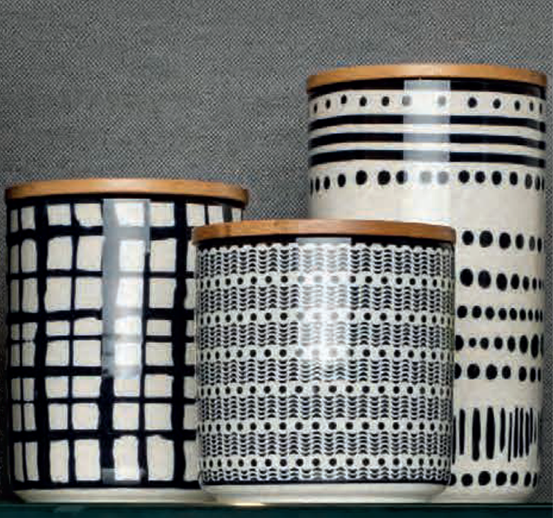 La nostra linea di piatti in porcellana per gli amanti dei contrasti, lasciati stupire da quello che il bianco e nero possono realizzare!Particolarità di questo servizio: applicazione colore a tampone con risultato “effetto vissuto”, diverso decoro su ogni Barattolo.