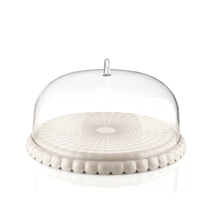 Tortiera con campana, un oggetto prezioso nella sua semplicità e nella sua funzionalità, perfetta per servire golose torte, cioccolatini, piccola pasticceria ma anche stuzzichini e finger food per aperitivi eleganti e ricercati.