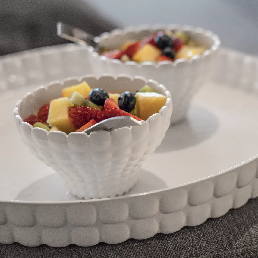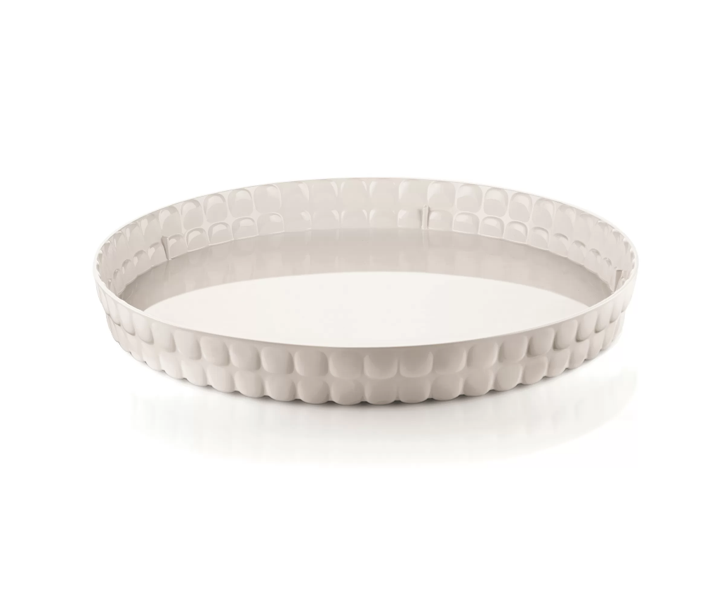 Vassoio circolare in pregiato materiale plastico bianco latte dagli effetti scintillanti. Anche questo pezzo della collezione Tiffany è perfetto per l’outdoor ma anche per impreziosire le tavole più formali. Rigorosamente Made in Italy.