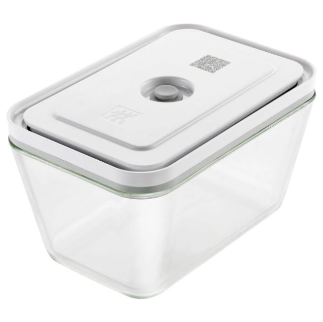 Il contenitore in vetro di grandi dimensioni per chef creativi. Fatti ispirare dalla versatilità di questo ampio contenitore rettangolare in vetro FRESH & SAVE di taglia L! Trasforma il tuo frigo e il tuo freezer nel tuo banco casalingo di prodotti freschi! O prepara le pietanze e mettile in frigo o in freezer finché non arriva il loro turno sul menù! I contenitori ermetici e senza odori mantengono il cibo fresco fino a cinque volte più a lungo rispetto ai convenzionali metodi di conservazione senza sottovuoto. Il contenitore è utilizzabile in microonde e lavabile in lavastoviglie e, grazie al robusto vetro borosilicato, è persino a prova di freezer e forno! Dimentica le bruciature da congelamento! Mettere sottovuoto il contenitore in vetro richiede solo pochi secondi. La comoda pompa per sottovuoto FRESH & SAVE estrae l’aria dal contenitore con la pressione di un pulsante, e conserva in maniera sicura vitamine e aromi. Per una migliore panoramica, scansiona il QR code sul coperchio del contenitore e tieni traccia del cibo conservato in frigo o in freezer grazie all’app ZWILLING Culinary World. Quando si avvicina la scadenza del cibo conservato, l’app ti manda automaticamente un promemoria, così non lo dimenticherai e non finirà nella spazzatura. Con un sistema come questo, non ci sono limiti alla tua creatività! Cucina qualcosa di fresco ogni giorno. Cucina la domenica per l’intera settimana Qualunque cosa tu voglia fare: il contenitore per sottovuoto L è a tua disposizione!