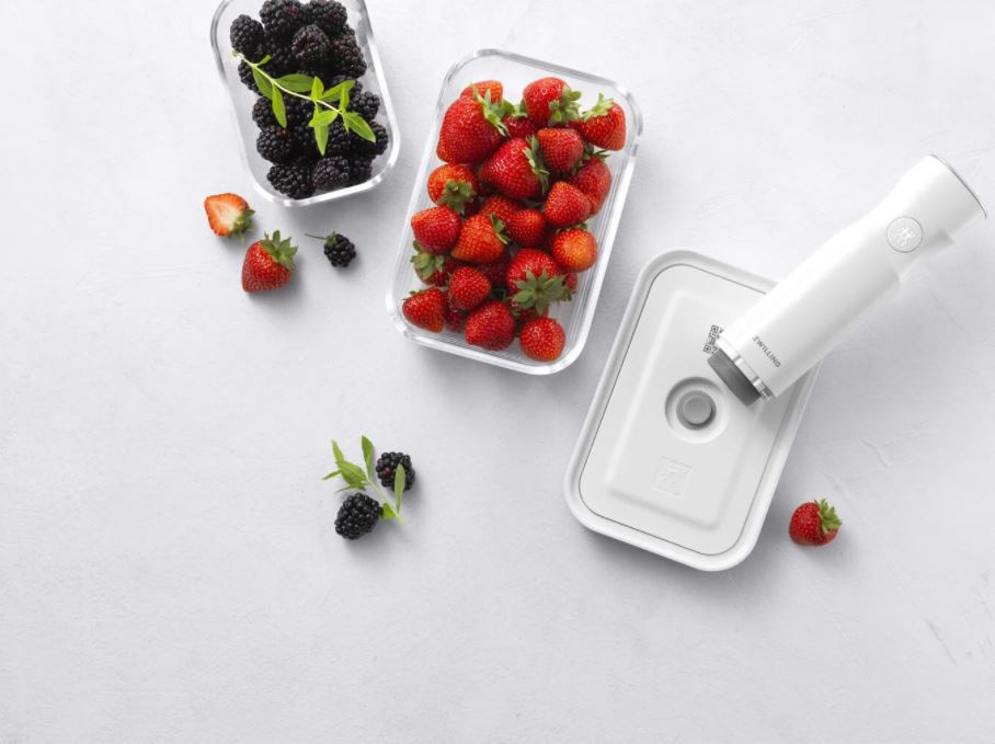 I contenitori sottovuoto con gli innovativi coperchi con tecnologia a doppio isolamento sigillano in sicurezza aromi e sostanze nutritive. Cibi e pietanze rimangono freschi fino a 5 volte più a lungo rispetto alla conservazione senza sottovuoto! Facile rintracciabilità dei contenitori tramite QR Code nell’app ZWILLING Culinary World.
