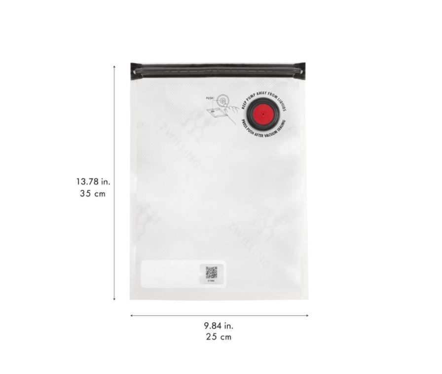 - Collegamento dei sacchetti semplice grazie all’app ZWILLING Culinary World e al QR code situato sulle buste, utile per tenere traccia del cibo e della sua durata.